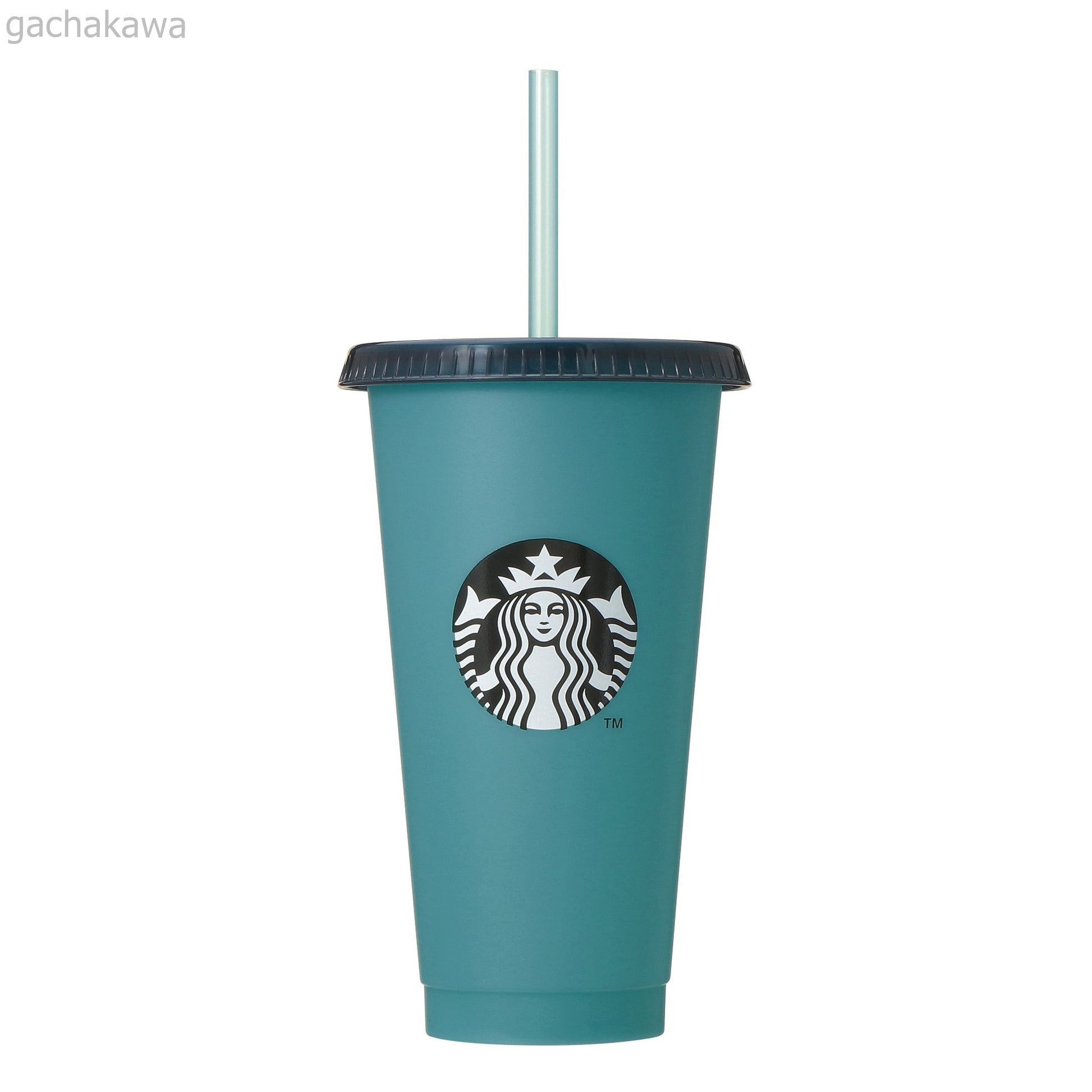 This large capacity reusable cold cup changes its body color from turquoise to navy when filled with cold drinks with ice.